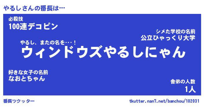 | ヘコむあだ名 | 『やるにー』『つくし』『やるお』 |