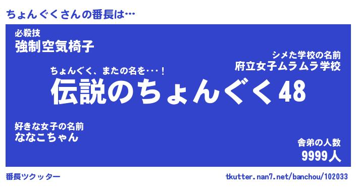 | 男性向けラノベタイトル風あだ名 | 『ちょんぐくの憂鬱』 |