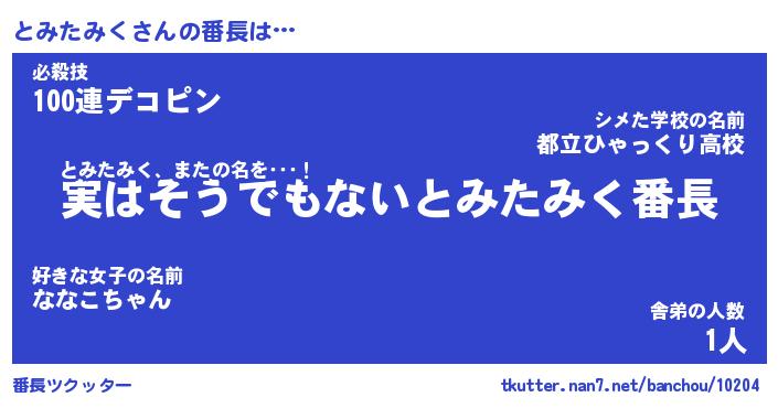 | ヒーロー風カッコイイあだ名 | 『スーパートミタミク』『黄金騎士トミ』 |