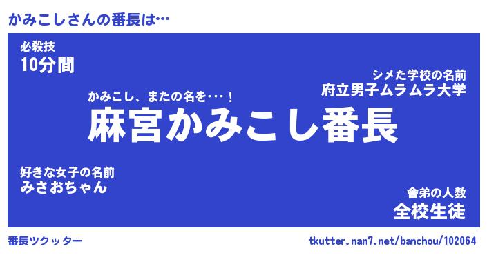 | ヘコむあだ名 | 『かみにー』『牛乳』『かみっ子』 |