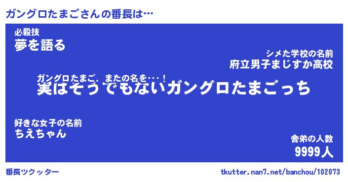 | 伝説のあだ名 | 『封印されしスナイパーガングロたまご』 |