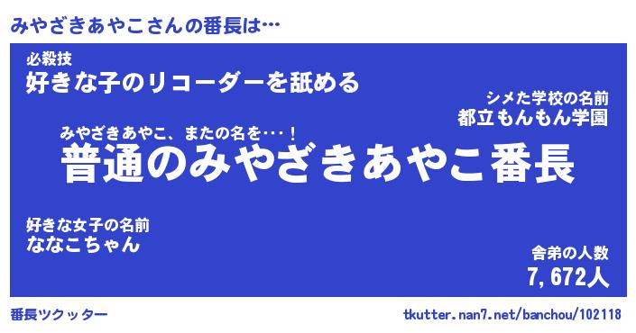 | ヘコむあだ名 | 『みやっふぃ~』『なまこ酢』 |