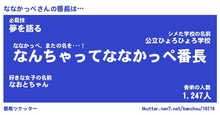 | 肩書あだ名 | 『ななかっぺ御曹司』『ななかっぺ班長』 |