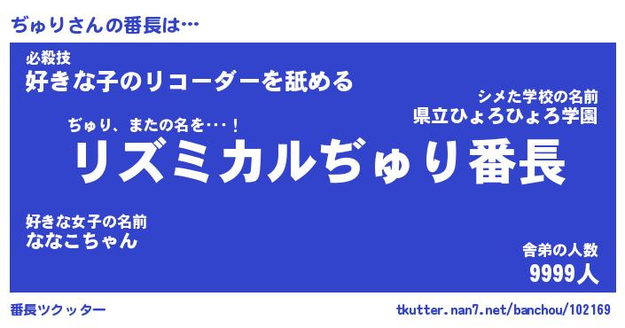 | 2回繰り返すあだ名 | 『ぢゅぢゅ』『ぢぢゅゅ』『ぬらぬら』 |
