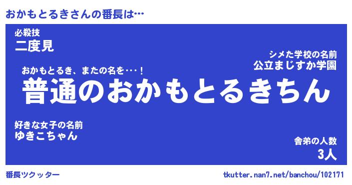 | 男性向けラノベタイトル風あだ名 | 『おかもとるきの憂鬱』 |