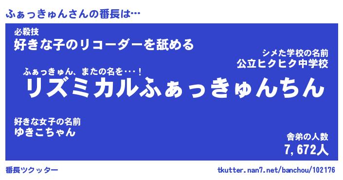 | 伝説のあだ名 | 『伝説のスナイパーふぁっきゅん』 |