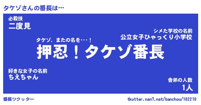 | 肩書あだ名 | 『タケゾ店長』『タケゾ国家主席』 |