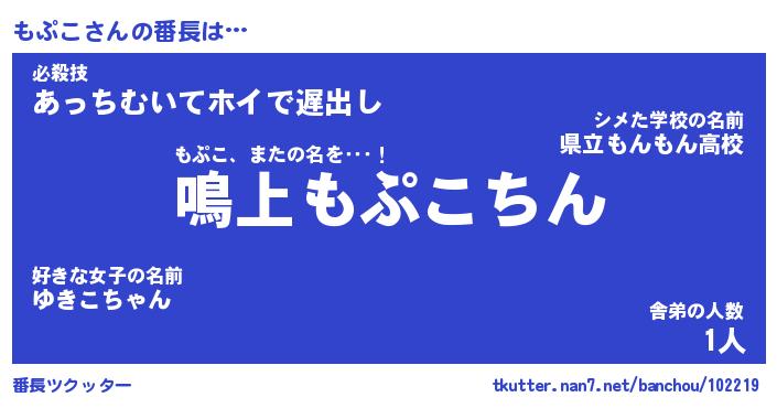 | ヒーロー風カッコイイあだ名 | 『スーパーモプコ』『ウルトラもぷこマン』 |