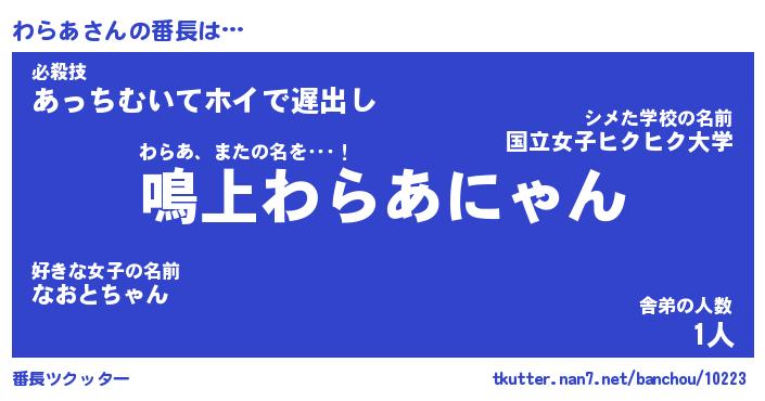 | 意味不明あだ名 | 『ペロリンわらあ』『わらあフォーエバー』 |