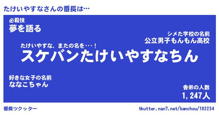 | 意味不明あだ名 | 『ペロリンたけいやすな』 |