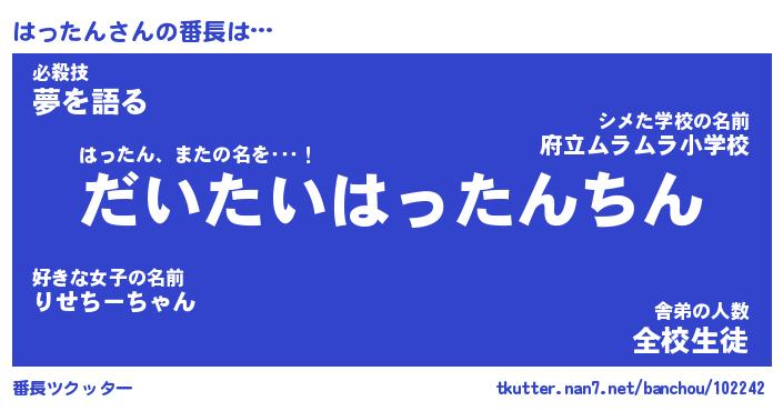 | ヒーロー風カッコイイあだ名 | 『スーパーハッタン』『暗黒騎士ハッ』 |