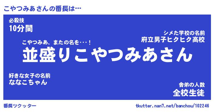 | ヒーロー風カッコイイあだ名 | 『スーパーコヤツミア』『暗黒騎士コヤ』 |