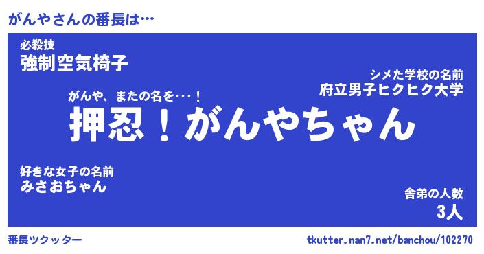 | ポケモン風あだ名 | 『ガンチュウ』『ガンヤダネ』 |