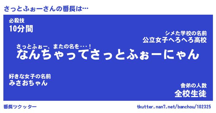 | 伝説のあだ名 | 『伝説のスナイパーさっとふぉー』 |