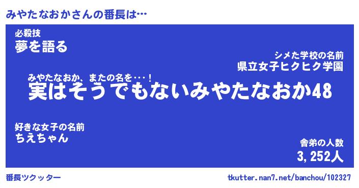 | ヘコむあだ名 | 『みやもー』『牛乳』『みやっ子』 |