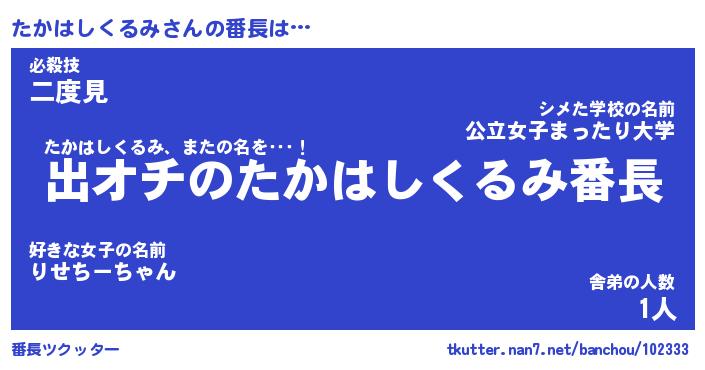 | ヒーロー風カッコイイあだ名 | 『スーパータカハシクルミ』 |
