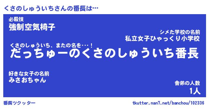 | 伝説のあだ名 | 『伝説のスナイパーくさのしゅういち』 |