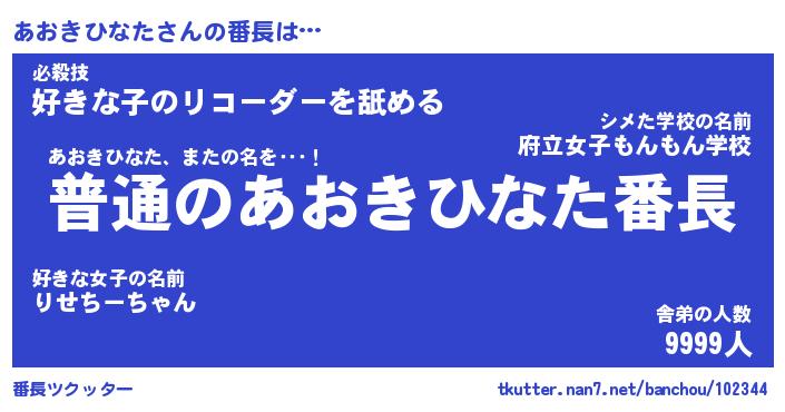 | 肩書あだ名 | 『あおきひなた御曹司』 |