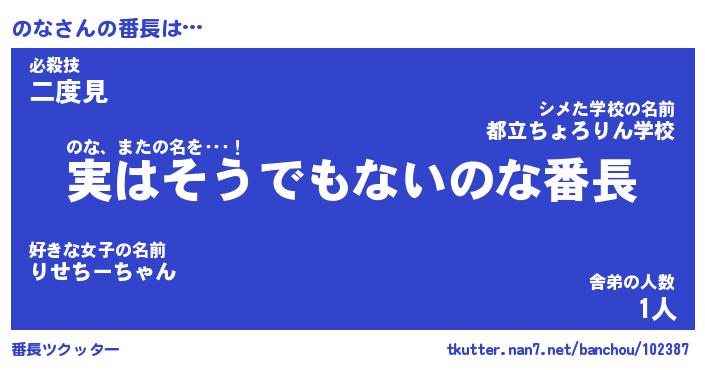 | 2回繰り返すあだ名 | 『のなのな』『ののなな』『ねちねち』 |