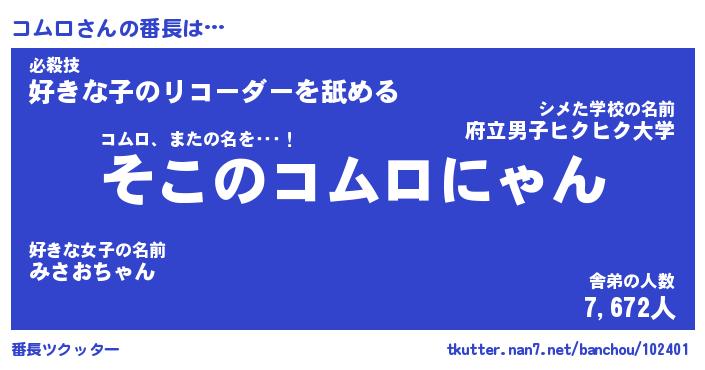 | ヒーロー風カッコイイあだ名 | 『スーパーコムロ』『ウルトラコムロマン』 |