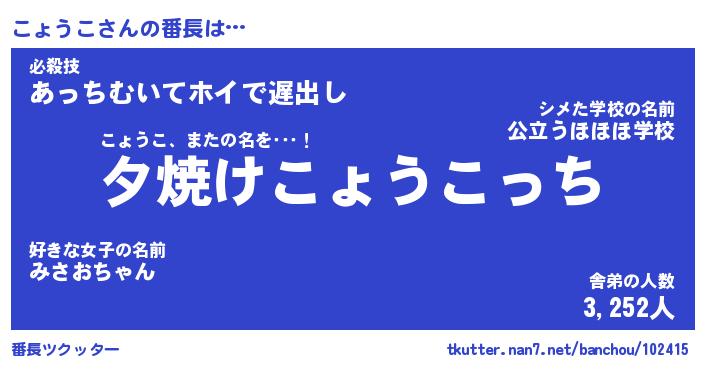| ヒーロー風カッコイイあだ名 | 『スーパーコョウコ』『天弓騎士コョ』 |