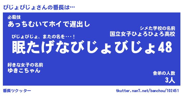 | ヘコむあだ名 | 『びじにゅー』『豆乳』『びじぷりん』 |