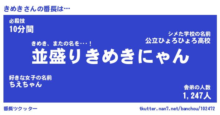 | ヒーロー風カッコイイあだ名 | 『スーパーキメキ』『ウルトラきめきマン』 |
