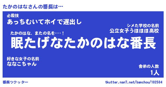 | ヒーロー風カッコイイあだ名 | 『スーパータカノハナ』『黄金騎士タカ』 |