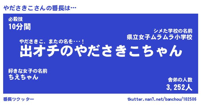| 伝説のあだ名 | 『伝説のスナイパーやださきこ』 |