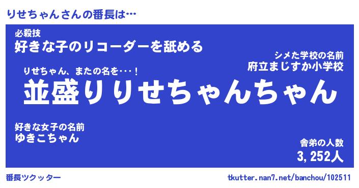 | ヘコむあだ名 | 『りせもー』『酢こんぶ』『りせ太郎』 |