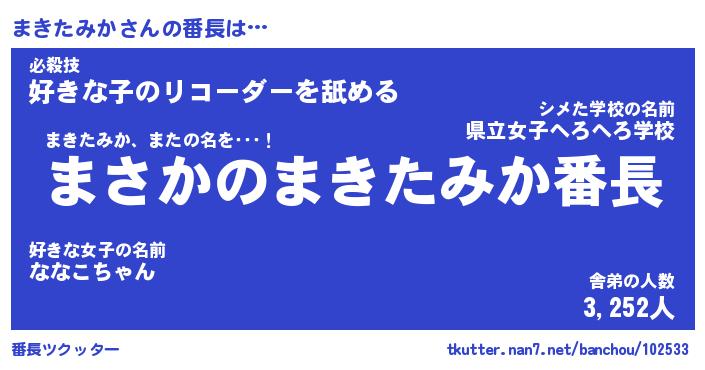 | 肩書あだ名 | 『まきたみか御曹司』『まきたみか班長』 |