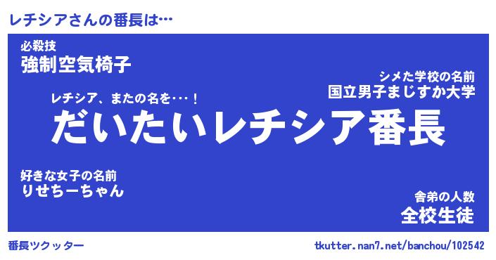 | 肩書あだ名 | 『レチシア店長』『レチシア総理大臣』 |