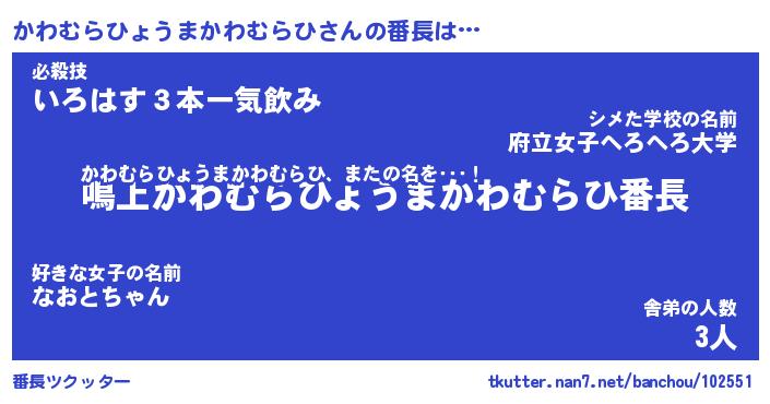 | 意味不明あだ名 | 『ペロリンかわむらひょうまかわむらひ』 |