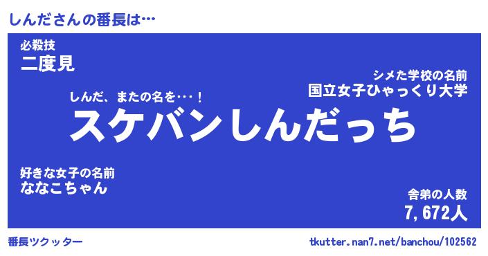 | 2回繰り返すあだ名 | 『しんしん』『ししんん』『ぬぷぬぷ』 |