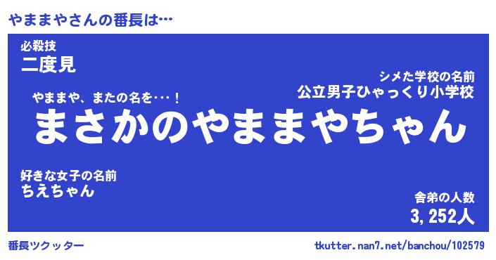 | 2回繰り返すあだ名 | 『やまやま』『ややまま』『うずうず』 |