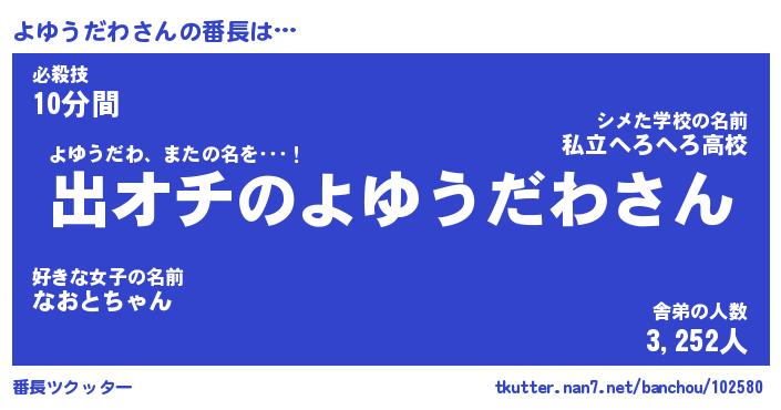 | ヘコむあだ名 | 『よゆふぇ~』『なまこ酢』 |