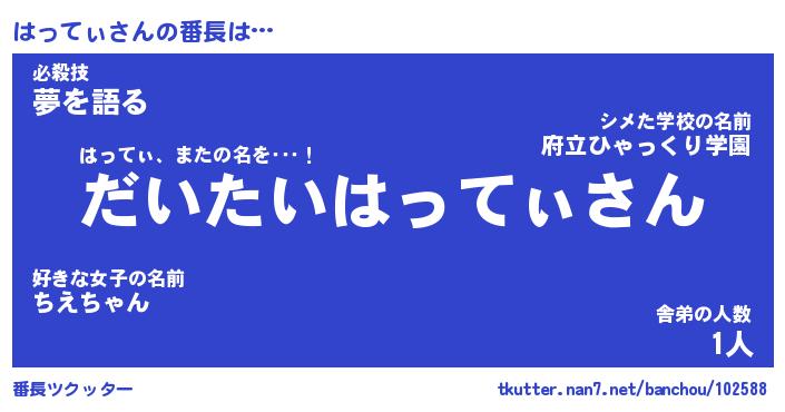 | ポケモン風あだ名 | 『ハッチュウ』『ハッテダネ』 |