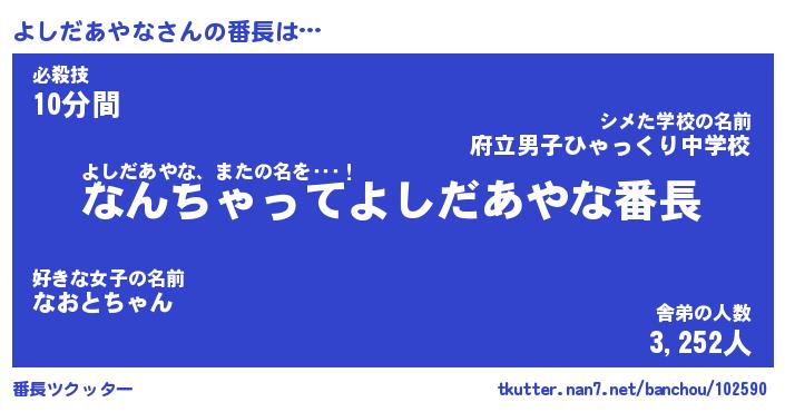 | ヒーロー風カッコイイあだ名 | 『スーパーヨシダアヤナ』『幻影騎士ヨシ』 |