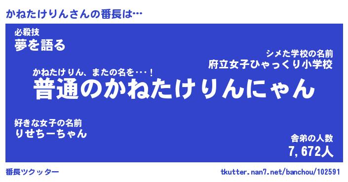 | ヒーロー風カッコイイあだ名 | 『スーパーカネタケリン』『炎刃騎士カネ』 |