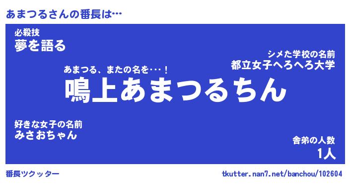 | 意味不明あだ名 | 『ペロリンあまつる』『永久保存あまつる』 |
