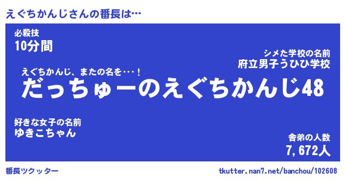 | ヒーロー風カッコイイあだ名 | 『スーパーエグチカンジ』『炎刃騎士エグ』 |