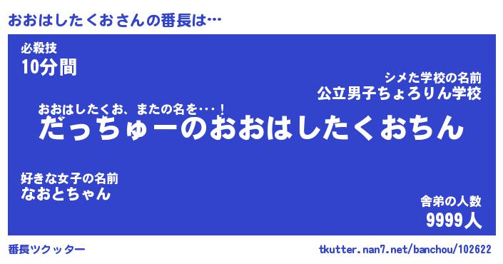 | ヒーロー風カッコイイあだ名 | 『スーパーオオハシタクオ』 |