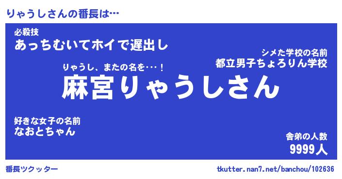 | 意味不明あだ名 | 『ペロリンりゃうし』『永久保存りゃうし』 |