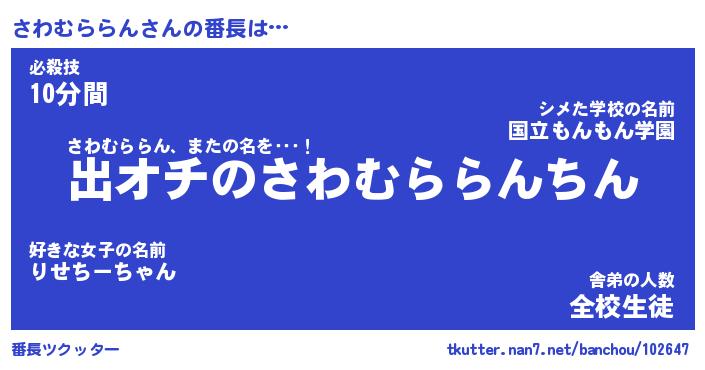 | 伝説のあだ名 | 『伝説のスナイパーさわむららん』 |