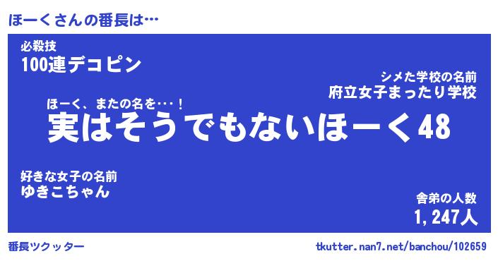 | 伝説のあだ名 | 『封印されしスナイパーほーく』 |