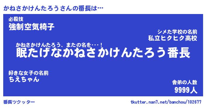 | 伝説のあだ名 | 『封印されしスナイパーかねさかけんたろう』 |