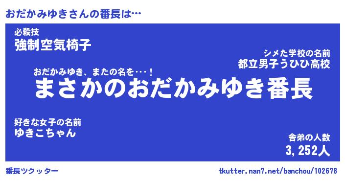 | 肩書あだ名 | 『おだかみゆきCEO』『おだかみゆき班長』 |