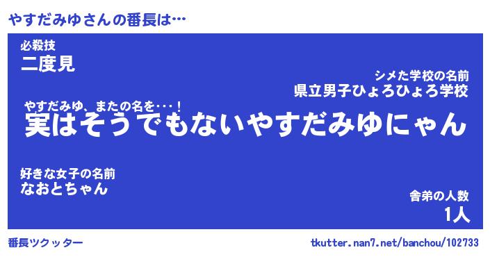 | 2回繰り返すあだ名 | 『やすやす』『ややすす』『ぬれぬれ』 |