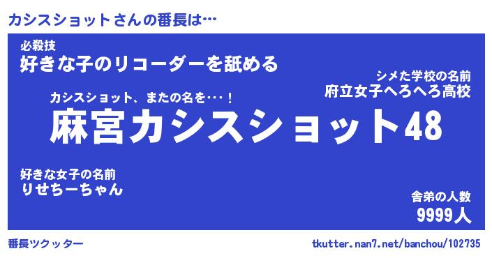 | 恥ずかしいあだ名 | 『プリティーカシスショット』『カシちん』 |