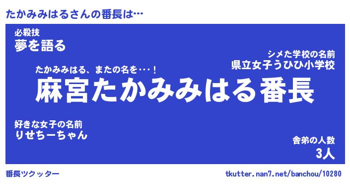 | 恥ずかしいあだ名 | 『プリティーたかみみはる』『たかっちょ』 |